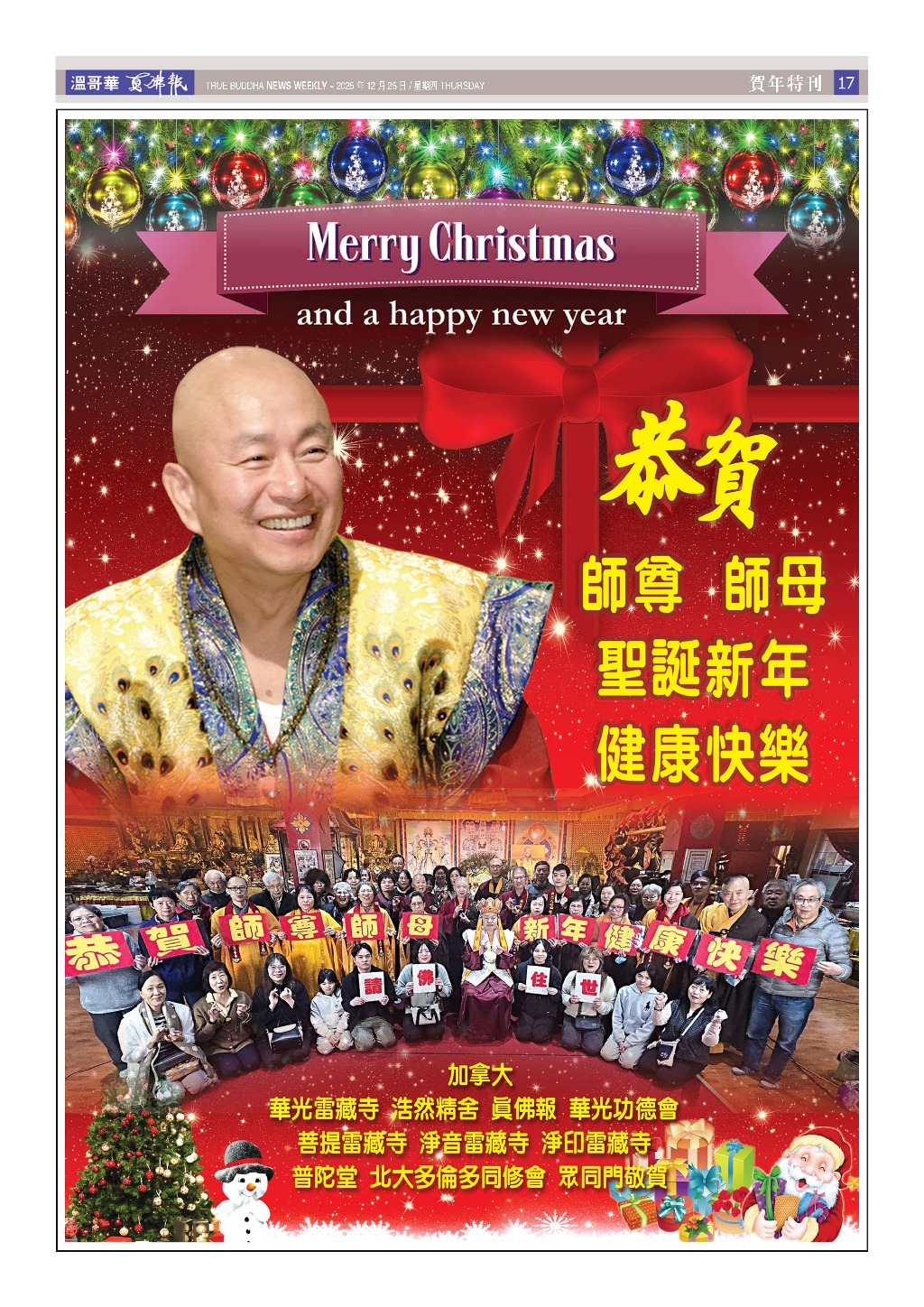 廣告刊登 焦點恭賀 師尊 師母 聖誕新年 健康快樂 by tbnews712/27/2025065 Share0 《賀年廣告》 恭賀 師尊 師母 聖誕新年 健康快樂 Merry X’mas & Happy New Year 加拿大華光雷藏寺 浩然精舍 真佛報 華光功德會 菩提雷藏寺 淨音雷藏寺 淨印雷藏寺 普陀堂 北大多倫多同修會 眾同門敬賀 Share this:Facebook Related
